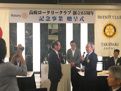 創立65周年記念事業贈呈式 8月27日に、創立65周年記念事業贈呈式を開催致しました。 創立65周年を記念しまして、高崎市内の市立中学校25校へプロジェクタ用の移動式スクリーンを贈りました。 <前のページ 活動報告一覧に戻る 次のページ> トップページに戻る