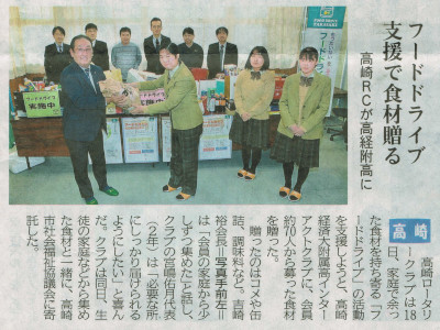 フードドライブ活動の支援の記事が2020年12月20日(日)の上毛新聞に取り上げられました。